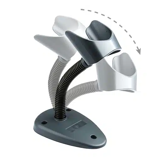 Flexible, adjustable stand for hands-free scanning. Provides safe keeping for your Wasp scanner while not in use.